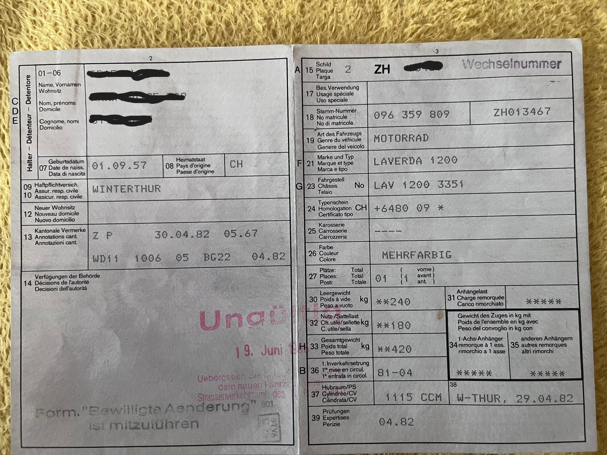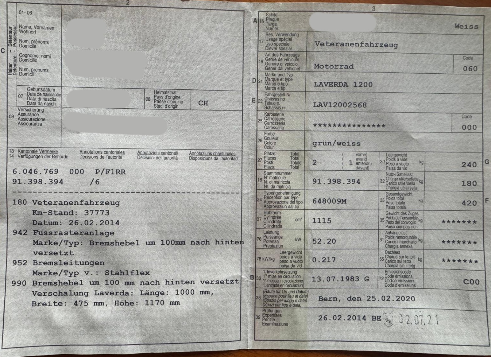 Die Laverda hatte TÜV bis 06 /2025