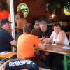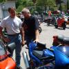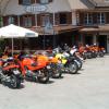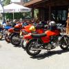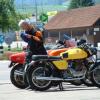 Tatsächlich waren in der Gartenwirtschaft von Stahm Motos zwei Tische für uns LCSler reserviert. Insgesamt waren 17 Clubmitglider anwesend. Wir genossen das Salatbuffet, die legendären "Töffsattelsteaks" und kühle Getränke. Bald stellten wir fest, dass der Laverdaclub mit Abstand am stärksten vertreten und so etwas wie Hauptgast war. Es war schon etwas ungewohnt, dass man Ducatis und Guzzis in den vielen LAVERDAs direkt suchen musste. Jedenfalls kamen wir vom LCS ganz gross heraus: HR. Möri wurde als ehemaliger LAVERDA-Importeur gebeten, übers Mikrofon etwas über die Geschichte von LAVERDA und den Import in die Schweiz zu erzählen. Die Modellpalette von den frühen 70er Jahren bis hin zu den Zane-Modellen hatte er anhand von anwesenden Bikes beschrieben und auf die speziellen Merkmale der Modelle hingewiesen. Auch über die Gründung des LCS hat er berichtet und last but not least den Vorstand für seine Aktivität und das tolle Jahresprogramm gerühmt. Den Wunsch von Hansruedi, dass die Marke LAVERDA und deren Motorräder durch Leute wie wir vom LCS noch viele Jahre am Leben erhalten werden, können wir nur teilen! Dieser Tag war auf jeden Fall ein weiterer Schritt in die richtige Richtung.